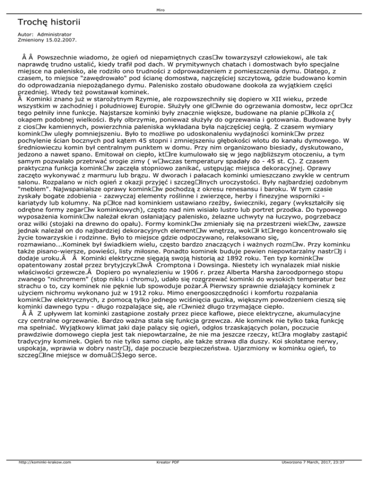 kominkÃłw uległy pomniejszeniu. Było to możliwe po udoskonaleniu wydajności kominkÃłw przez