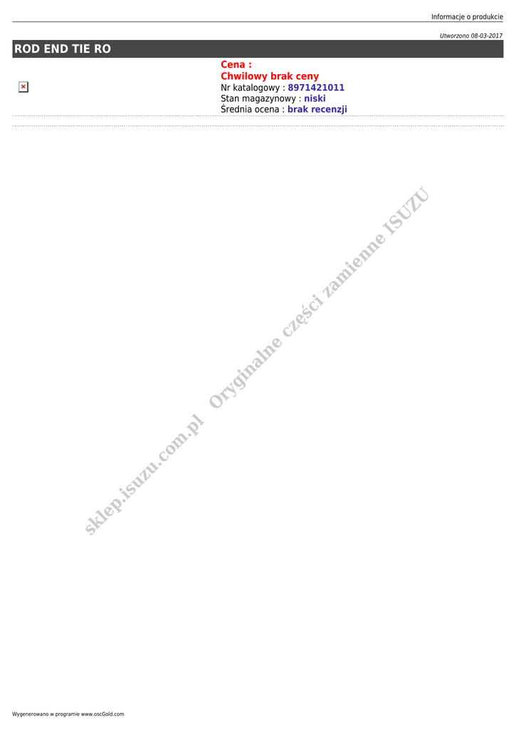 Informacje o produkcie Utworzono 08-03-2017 ROD END TIE RO Cena : Chwilowy brak ceny sk le p. is uz u. co m .p l O ry gi na l ne cz ęś ci za m ie nn e IS U ZU Nr katalogowy : 8971421011 Stan magazynowy : niski Średnia ocena : brak recenzji Wygenerowano w programie www.oscGold.com