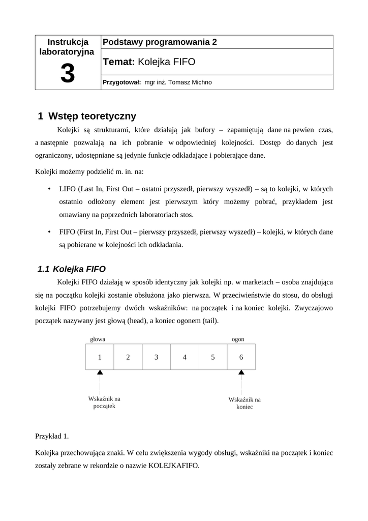 Temat: Kolejka FIFO 1 Wstęp teoretyczny