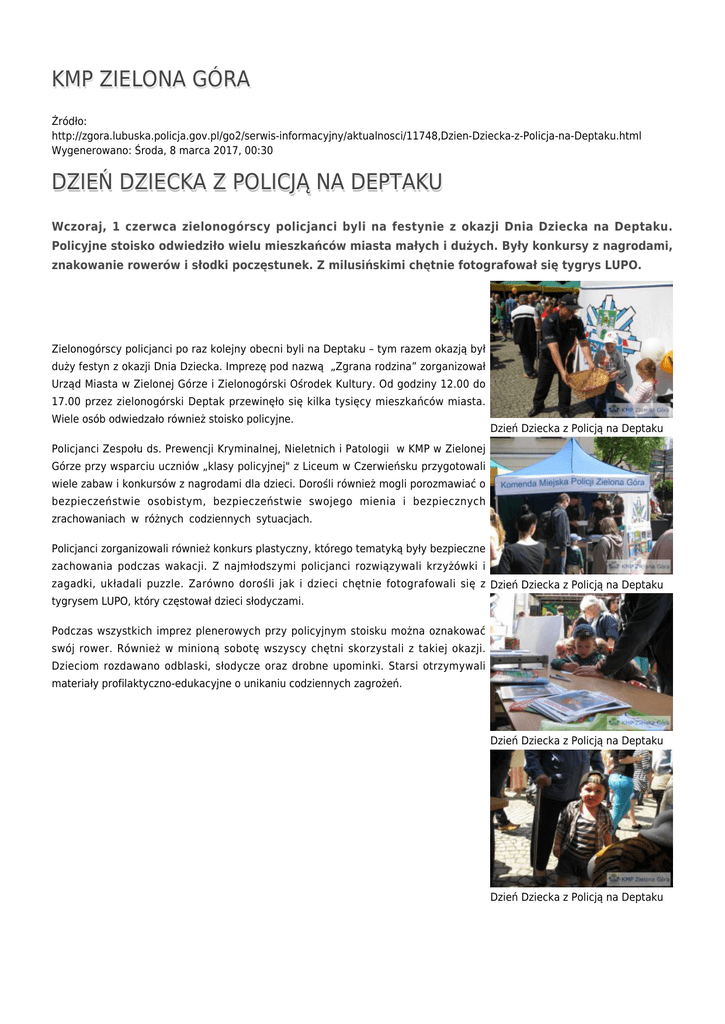 KMP ZIELONA GÓRA DZIEŃ DZIECKA Z POLICJĄ NA DEPTAKU