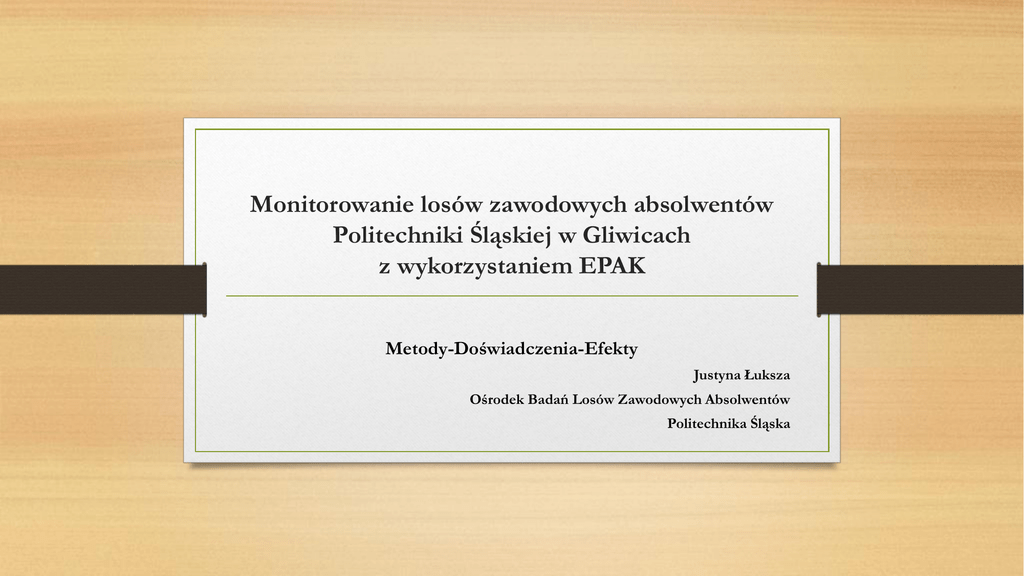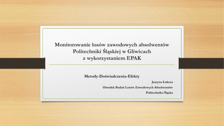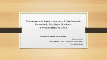 Monitorowanie losów zawodowych absolwentów Politechniki Śląskiej w Gliwicach z wykorzystaniem EPAK Metody-Doświadczenia-Efekty Justyna Łuksza Ośrodek Badań Losów Zawodowych Absolwentów Politechnika Śląska Politechnika Śląska 2015 • • • • 13 wydziałów, 2 kolegia 51 kierunków studiów 25 tys. studentów 7415 absolwentów Ośrodek Badań Losów Zawodowych Absolwentów • samodzielna sekcja w ramach Działu Spraw Studenckich i Kształcenia • wspomagana przez: • koordynatorów badań na każdym z wydziałów • Uczelnianą Radę ds. Systemu Zapewnienia Jakości Kształcenia Jak prowadzimy badania? • kontynuowana jest obowiązująca do tej pory procedura ankietyzacji • realizowane jest testowe wdrożenie Elektronicznej Platformy Analizy Kompetencji Dotychczasowa procedura badań • • • • badania do 6 miesięcy od zakończenia studiów papierowy kwestionariusz ankiety uroczyste wręczenia dyplomów na wydziałach/odbieranie dyplomu w dziekanacie kwestionariusze przekazywane do OBLZA • kodowanie danych • analizy danych (ilościowe i jakościowe) • sporządzanie raportów - ogólnouczelnianego, wydziałowych i innych zgodnie z zapotrzebowaniami (wnioski konkursowe, projekty strategiczne itp.) testowe wdrożenie EPAK kalendarium • luty 2014 – podpisanie umowy • kwiecień 2014 • szkolenie • utworzenie konta EPAK dla PŚ • zdefiniowanie struktury uczelni – wydziałów i kierunków • wrzesień 2014 • szkolenie • zdefiniowanie roczników rekrutacji • wprowadzenie danych absolwentów • październik 2014 • rozpoczęcie badań wśród absolwentów kierunków: Transport i Matematyka • sporządzenie raportów z testów • listopad 2014 • rozpoczęcie badań wśród absolwentów kierunku Inżynieria Środowiska w planach: • lipiec 2015 • rozpoczęcie badań dla absolwentów w trzy lata od zakończenia edukacji (rocznik 2011/2012) testowe wdrożenie EPAK dlaczego EPAK? • narzędzie wielowymiarowe i całościowe • prowadzenie badań losów zawodowych absolwentów • prowadzenie badań mających na celu ocenę osiągniętych efektów kształcenia przez absolwentów, a także studentów, pracodawców, pracowników naukowych • modułowa budowa i elastyczność programu • możliwość dostosowania zakresu badań do potrzeb uczelni Korzyści z wprowadzenia EPAK na Politechnice Śląskiej • zastosowanie ankiety internetowej zamiast papierowej w badaniach absolwentów wchodzących na rynek pracy (do 6 miesięcy po obronie) • zmniejszenie nakładu pracy przy zbieraniu danych - ankiety w formie papierowej były wypełniane przez absolwentów podczas uroczystości wręczania dyplomu na wydziale bądź w chwili jego odbioru w dziekanacie. • zmniejszenie nakładu pracy przy wprowadzaniu danych - dane z papierowych kwestionariuszy wymagają zakodowania i wprowadzenia do programu statystycznego. Korzyści z wprowadzenia EPAK na Politechnice Śląskiej • zastosowanie ankiety internetowej dostępnej w systemie EPAK zamiast ankiety internetowej przygotowanej na uczelni • zmniejszenie nakładu pracy przy stworzeniu i utrzymaniu własnego systemu ankietowania Korzyści z wprowadzenia EPAK na Politechnice Śląskiej • zdecydowanie skrócenie czasu uzyskania danych - proces zbierania papierowych kwestionariuszy trwał około 6 miesięcy, podobnie długo proces wprowadzania i analizy danych. • ułatwienie porównywania badań w czasie • obniżenie kosztów przeprowadzania badań - brak konieczności wydruku i archiwizacji kwestionariuszy, zakupu długopisów itp. • poprawa dostępności danych - budowa systemu pozwala na bezpośredni dostęp do danych i analiz dla osób zainteresowanych wynikami badań. Korzyści z wprowadzenia EPAK na Politechnice Śląskiej • badania bardziej adekwatne - większa możliwość modyfikowania kwestionariusza i dostosowywania go do kierunków studiów przygotowanie narzędzia badawczego dla całej uczelni wiązało się z koniecznością jego dużego uogólnienia – większa część kwestionariusza badań musiała być adekwatna dla wszystkich absolwentów kończących studia, mimo dużego zróżnicowania kierunków. Pytania ważne i specyficzne dla każdego z wydziałów, czy kierunków studiów- z konieczności- musiały być pytaniami otwartymi; ich kodowanie i analiza zajmowały bardzo dużo czasu. Korzyści z wprowadzenia EPAK na Politechnice Śląskiej • wzrost użyteczności danych dla działań zmierzających do poprawy jakości kształcenia - pełniejsza, szybsza i bardziej szczegółowa informacja na temat oceny efektów kształcenia na różnych płaszczyznach daje możliwość podejmowania bardziej umotywowanych decyzji przy tworzeniu nowych kierunków studiów, bądź modyfikowania programu już istniejących, Korzyści z wprowadzenia EPAK na Politechnice Śląskiej • uwzględnienie różnych interesariuszy (pracodawców, studentów, pracowników naukowych) jako współpartnerów procesu edukacji, jest niezwykle istotne, a do tej pory brane pod uwagę w sposób zróżnicowany i w niejednakowym stopniu. Korzyści z wprowadzenia EPAK na Politechnice Śląskiej • ujednolicenie procedur dotyczących monitorowania efektów kształcenia, zwłaszcza w aspekcie uzyskiwania informacji od pracodawców. Problemy pojawiające się podczas testowania EPAK • • • • TECHNICZNE LUDZKIE ORGANIZACYJNE MERYTORYCZNE Zalety EPAK • rola uzupełniająca wobec badania ogólnopolskiego prowadzonego przez MNiSW: • pozyskanie informacji od absolwentów pracujących za granicą • pozyskanie informacji od absolwentów pracujących na umowy cywilno-prawne • pozyskanie „miękkich” (jakościowych) informacji, których nie da się uzyskać na podstawie danych ZUS • dobór modułów ankiety (pytań) dostosowany do potrzeb uczelni; • identyfikacja większej liczby czynników (umiejętności, kompetencji, wiedzy) mających wpływ na powodzenie na rynku pracy; Perspektywy zastosowan
