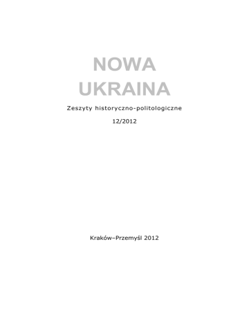 NOWA UKRAINA Zeszyty historyczno-politologiczne 12/2012 Kraków–Przemyśl 2012 Nowa Ukraina / New Ukraine RADA NAUKOWA: Andrzej Banach (Kraków), Paul Best (New Haven, CT), Aleksander Bobko (Rzeszów–Kraków), David Borgmeyer (Saint Louis, MO), Zdzisław Budzyński (Rzeszów–Przemyśl), Andrzej Chojnowski (Warszawa), Andrzej Chwalba (Kraków– Przemyśl), Jan Draus (Rzeszów–Przemyśl), Roman Drozd (Słupsk), Piotr Franaszek (Kraków–Przemyśl), Mark von Hagen (Tempe, AZ), John-Paul Himka (Edmonton, AB), Aleksandra Hnatiuk (Warszawa–Kijów), Illja Kononow (Łuhańsk), Anatolij Kruhłaszow (Czerniowce–Wilno), Hiroaki Kuromiya (Bloomington, IN), Jacek Lubecki (Statesboro, GA), Andrzej Nowak (Kraków–Warszawa), Roman Solchanyk (Los Angeles, CA), Andrzej Leon Sowa (Kraków), Stanisław Sroka (Kraków), Stanisław Stępień (Przemyśl), Frank Sysyn (Toronto, ON), Jerzy Tomaszewski (Warszawa), Wadym Wasiutynśkyj (Kijów), Leonid Zaszkilniak (Lwów). REDAKCJA: Jarosław Moklak (redaktor naczelny, Kraków–Przemyśl), Ola Kich-Masłej (sekretarz redakcji, Kraków), Piotr Bajor (sekretarz redakcji, Kraków–Przemyśl), Tarik Cyril Amar (New York, NY), Piotr Andrusieczko (Poznań), Anna Babiak (Kraków), Jan Jacek Bruski (Kraków), Grzegorz Demel (Kraków), Marta Dyczok (London, ON), Dawid Gacek (Kraków), Dmytro Kobrynśkyj (Kijów), Agnieszka Korniejenko (Kraków–Przemyśl), Paweł Krupa (Kraków–Przemyśl), Evhen Ladna (Toronto, ON), Torsten Lorenz (Berlin–Praha), Marian Mudryj (Lwów), Jan Pisuliński (Rzeszów), Diana Reilly (New York, NY). Zgodnie z wytycznymi MNiSW lista recenzentów publikowana jest na stronie internetowej Publikacja dofinansowana ze środków przeznaczonych na działalność statutową Wydziału Historycznego Uniwersytetu Jagiellońskiego w Krakowie Publikacja dofinansowana przez Państwową Wyższą Szkołę Wschodnioeuropejską w Przemyślu Redakcja nie zawsze identyfikuje się z poglądami autorów artykułów publikowanych w „Nowej Ukrainie” WYDAWCA: Instytut Historii UJ, Instytut Stosunków Międzynarodowych PWSW Copyright © by Nowa Ukraina. Zeszyty historyczno-politologiczne, Kraków–Przemyśl 2012 I S S N 1 8 9 5 –7 8 9 7 ADRESY REDAKCJI: Uniwersytet Jagielloński Instytut Historii ul. Gołębia 13 31–007 Kraków, PL Państwowa Wyższa Szkoła Wschodnioeuropejska Instytut Stosunków Międzynarodowych ul. Tymona Terleckiego 2 37–700 Przemyśl, PL mailto: n o w a u k r a i n a @ g m a i l . c o m skype: n o w a u k r a i n a www.nowaukraina.org Nowa Ukraina. Zeszyty historyczno-politologiczne, 12/2012 HISTORIA Світлана Орлик, До питання реалізації фіскальної політики уряду земськими інституціями українських губерній Російської імперії................... 5 Олена Аркуша, Мар’ян Мудрий, «Высказати ясно и Полякамъ и Европe»: Європа в уявленнях галицьких українців ХІХ – початку ХХ століття ...........................................................................................................15 Володимир Борщевич, Організація соціального захисту православного духовенства Волині в другій половині 40-х – 50-х рр. ХХ ст. ............................................................................................. 43 POLITOLOGIA Сергій Адамович, Соборність і децентралістські ідеї в суспільнополітичному житті Галичини в умовах незалежності України ...................51 Юрій Мацієвський, Чим є сучасна Україна і чи можливі в ній зміни? 63 Ярина Турчин, „М'яка сила” України в Польщі. ........................................ 75 Михайло Гордієнко, Становлення багатопартійності і перспективи українського парламентаризму .......................................................................... 85 Микола Бучин, Правове регулювання демократичних принципів виборів: міжнародний досвід................................................................................. 95 SOCIOLOGIA Piotr Długosz, Polska i ukraińska młodzież wobec przemian społecznych.............................................................................................................. 109 EDUKACJA Галина Висоцька, Діяльність українців Польщі в культурній та освітній сферах (1989-2012 рр.)........................................................................... 119 RECENZJE, WYDARZENIA Роман Грицьків, Українська Повстанська Армія: польська історіографія проблеми... ....................................................................................127 Patrycja Trzeszczyńska, Wszystkiego nie sposób pamiętać. O projekcie antropologii pamięci zbiorowej Jacka Nowaka... ................................................ 139 Jarosław Moklak, Łemkowie, Bojkowie, Rusini — historia, współczesność, kultura materialna i duchowa, red. S. Dudra, B. Halczak, R. Drozd, I. Betko, M. Šmigel, t. IV, cz. 1–2, Słupsk–Zielona Góra 2012. ISBN 978-83-60087-63-3 ....... 151 New Ukraine. A Journal of History and Politics, 12/2012 HISTORY Orlyk, Svitlana. On the Question of Government Fiscal Policy Implementation by Zemstvo Institutions of Ukrainian Provinces of the Russian Empire .......................................................................................................
