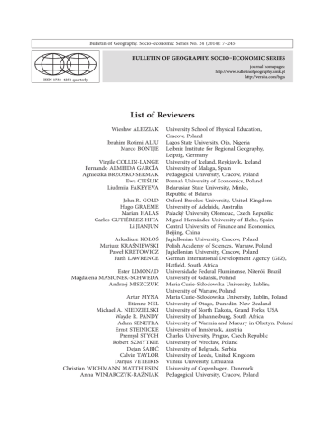 List of Reviewers - Bulletin of Geography. Socio