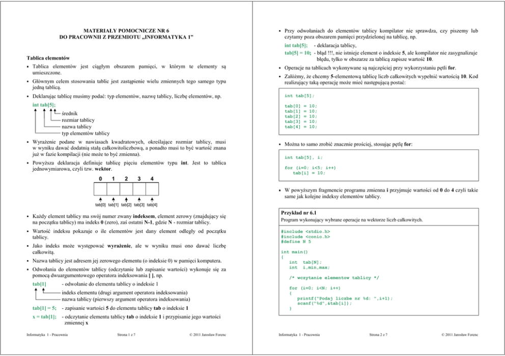 na początku tablicy) ma indeks 0 (zero), zaś ostatni N-1, gdzie N - rozmiar tablicy.
