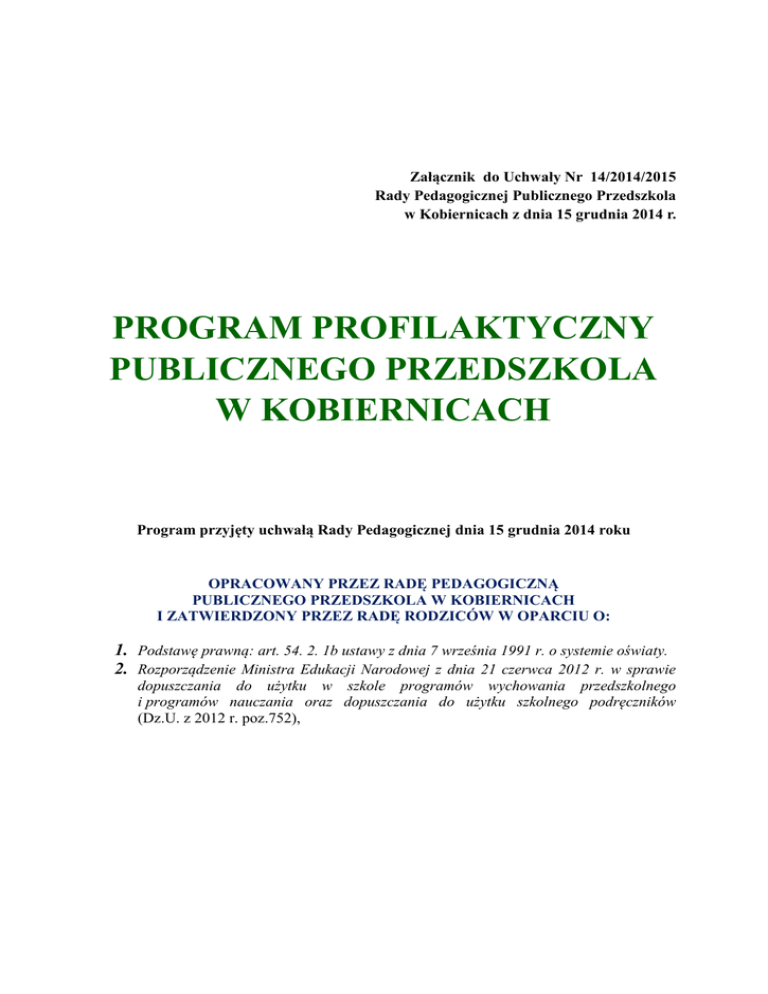program profilaktyczny publicznego przedszkola w kobiernicach