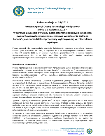 Rekomendacja nr 24/2011 Prezesa Agencji Oceny Technologii