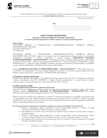 zapytanie ofertowe - SOLAR-BIN ENERGIA