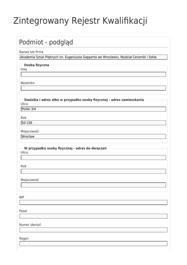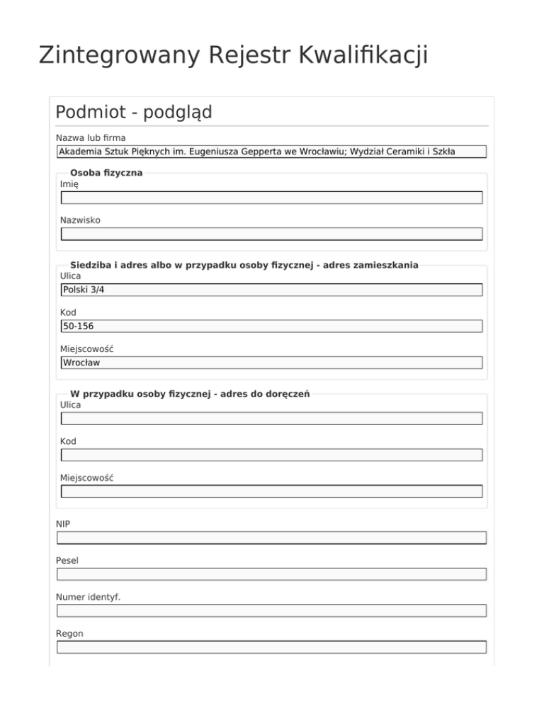 Wydruk - Zintegrowany Rejestr Kwalifikacji