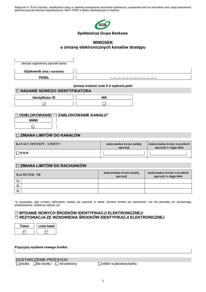 WNIOSEK o zmianę elektronicznych kanałów dostępu