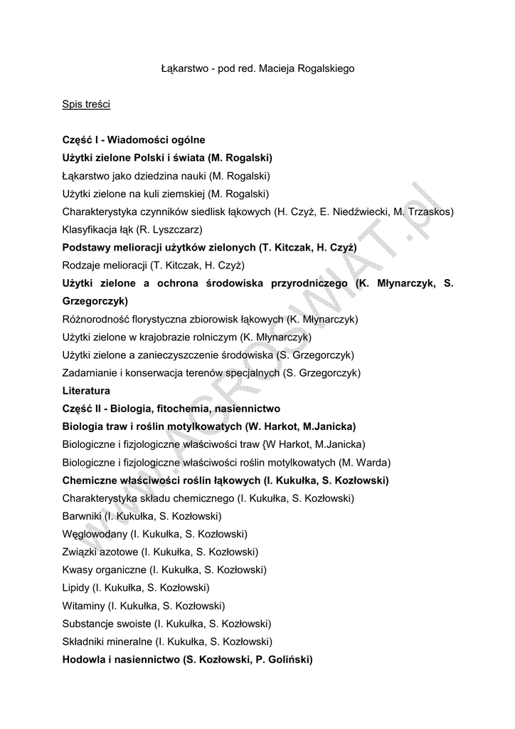 Łąkarstwo - pod red. Macieja Rogalskiego Spis treści Część I
