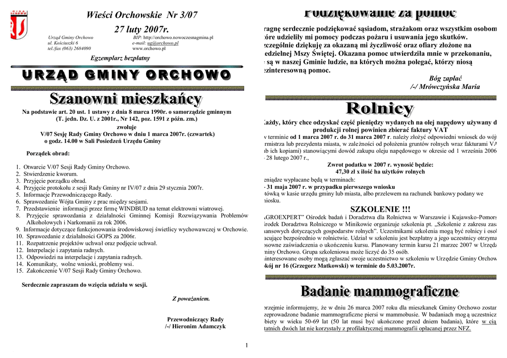 Wieści Orchowskie Nr 3/07 27 luty 2007r.