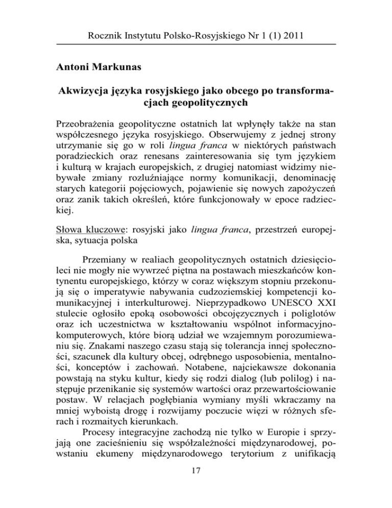 Antoni Markunas Akwizycja języka rosyjskiego jako obcego po