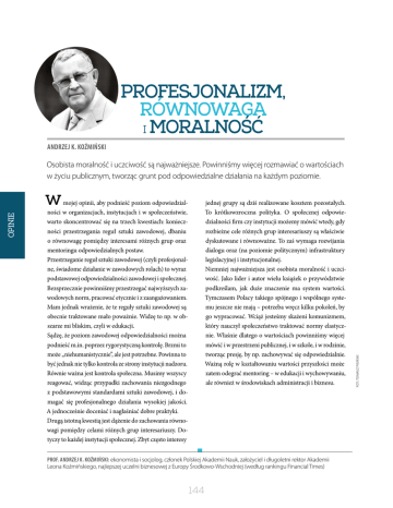 PROFESJONALIZM, RÓWNOWAGA I MORALNOŚĆ