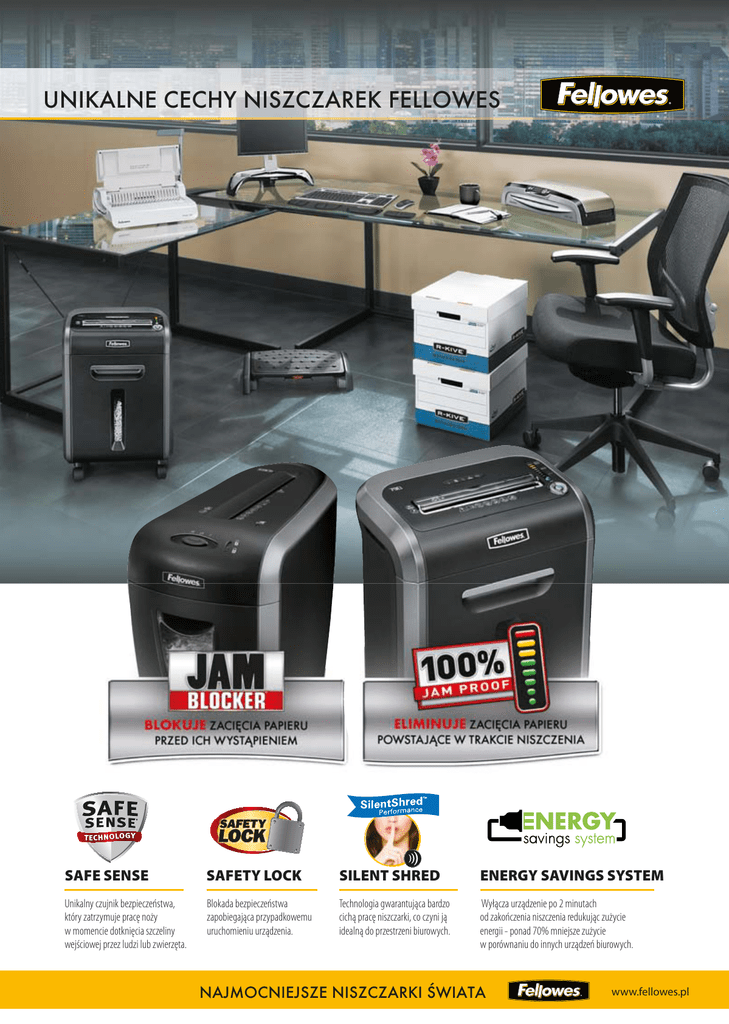 UNIKALNE CECHY NISZCZAREK FELLOWES SAFETY LOCK SAFE SENSE SILENT SHRED