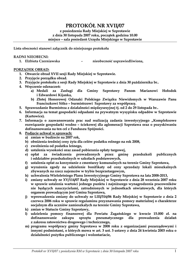 protokół nr xvii/07 - Urząd Miejski w Szprotawie