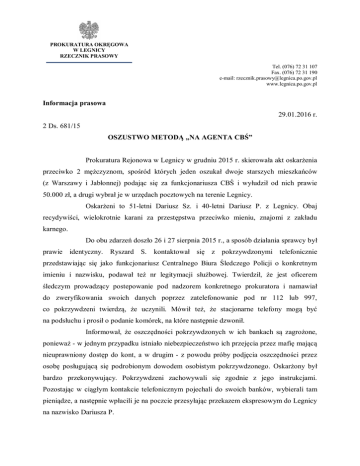 Informacja prasowa 29.01.2016 r. 2 Ds. 681/15 OSZUSTWO