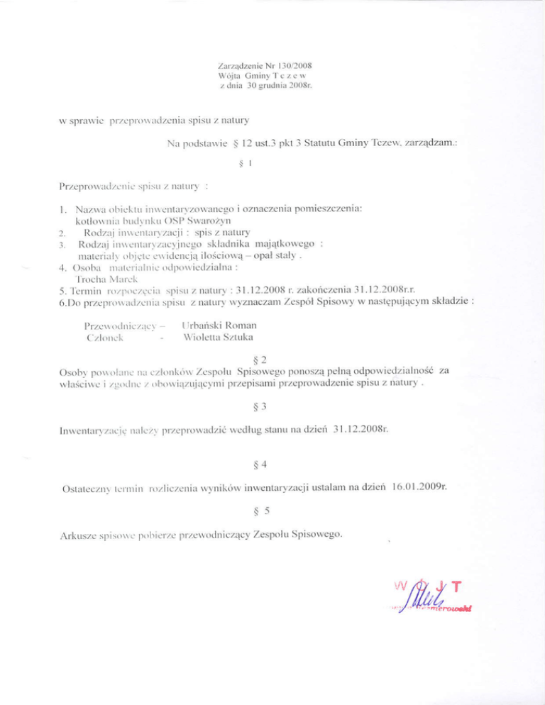 Na podstawieS 12ust.3pkt 3 StatutuGminyTcze4 zarzqdza$L.