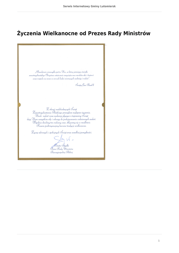 Serwis Internetowy Gminy Lutomiersk Życzenia Wielkanocne od Prezes Rady Ministrów 1