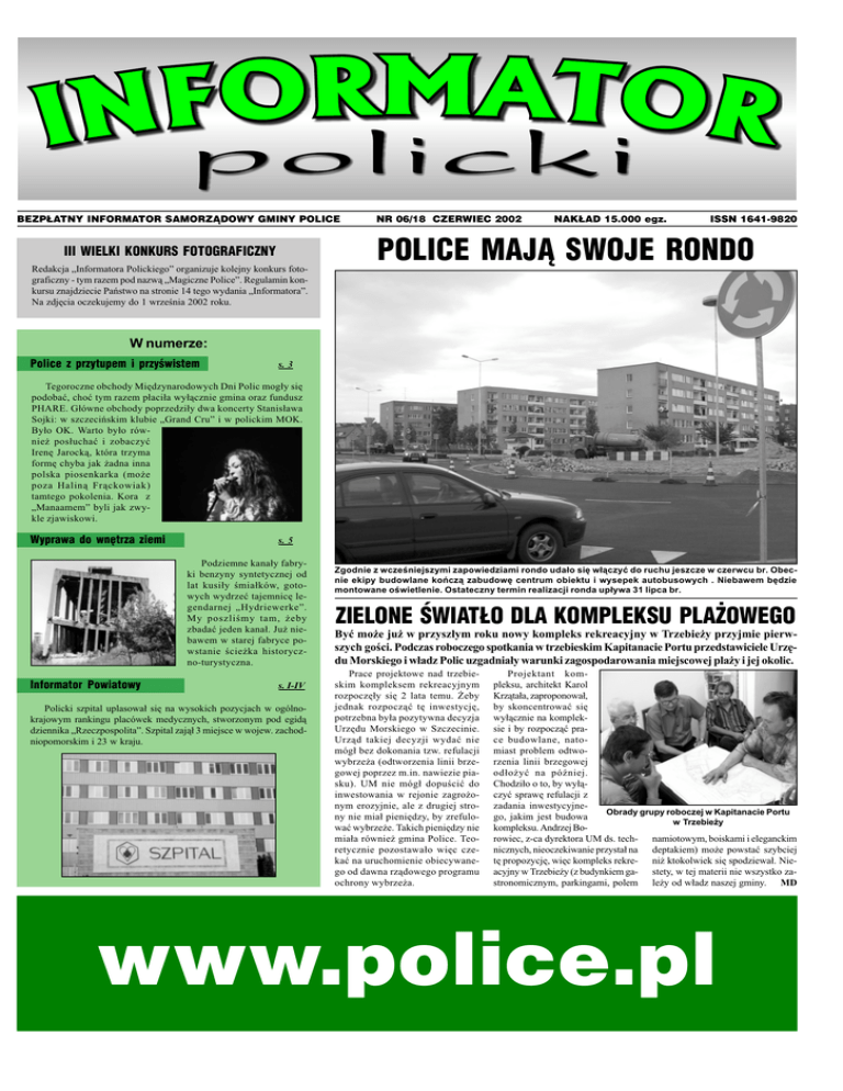 BEZP£ATNY INFORMATOR SAMORZ¥DOWY GMINY POLICE III WIELKI KONKURS FOTOGRAFICZNY Redakcja Informatora Polickiego organizuje kolejny konkurs fotograficzny - tym razem pod nazw¹ Magiczne Police. Regulamin konkursu znajdziecie Pañstwo na stronie 14 tego wydania Informatora. Na zdjêcia oczekujemy do 1 wrzenia 2002 roku. W numerze: Police z przytupem i przywistem NR 06/18 CZERWIEC 2002 NAK£AD 15.000 egz. ISSN 1641-9820 POLICE MAJ¥ SWOJE RONDO s. 3 Tegoroczne obchody Miêdzynarodowych Dni Polic mog³y siê podobaæ, choæ tym razem p³aci³a wy³¹cznie gmina oraz fundusz PHARE. G³ówne obchody poprzedzi³y dwa koncerty Stanis³awa Sojki: w szczeciñskim klubie Grand Cru i w polickim MOK. By³o OK. Warto by³o równie¿ pos³uchaæ i zobaczyæ Irenê Jarock¹, która trzyma formê chyba jak ¿adna inna polska piosenkarka (mo¿e poza Halin¹ Fr¹ckowiak) tamtego pokolenia. Kora z Manaamem byli jak zwykle zjawiskowi. Wyprawa do wnêtrza ziemi s. 5 Podziemne kana³y fabryki benzyny syntetycznej od lat kusi³y mia³ków, gotowych wydrzeæ tajemnicê legendarnej Hydriewerke. My poszlimy tam, ¿eby zbadaæ jeden kana³. Ju¿ niebawem w starej fabryce powstanie cie¿ka historyczno-turystyczna. Informator Powiatowy s. I-IV Policki szpital uplasowa³ siê na wysokich pozycjach w ogólnokrajowym rankingu placówek medycznych, stworzonym pod egid¹ dziennika Rzeczpospolita. Szpital zaj¹³ 3 miejsce w wojew. zachodniopomorskim i 23 w kraju. Zgodnie z wczeniejszymi zapowiedziami rondo uda³o siê w³¹czyæ do ruchu jeszcze w czerwcu br. Obecnie ekipy budowlane koñcz¹ zabudowê centrum obiektu i wysepek autobusowych . Niebawem bêdzie montowane owietlenie. Ostateczny termin realizacji ronda up³ywa 31 lipca br. ZIELONE WIAT£O DLA KOMPLEKSU PLA¯OWEGO Byæ mo¿e ju¿ w przysz³ym roku nowy kompleks rekreacyjny w Trzebie¿y przyjmie pierwszych goci. Podczas roboczego spotkania w trzebieskim Kapitanacie Portu przedstawiciele Urzêdu Morskiego i w³adz Polic uzgadnia³y warunki zagospodarowania miejscowej pla¿y i jej okolic. Prace projektowe nad trzebieskim kompleksem rekreacyjnym rozpoczê³y siê 2 lata temu. ¯eby jednak rozpocz¹æ tê inwestycjê, potrzebna by³a pozytywna decyzja Urzêdu Morskiego w Szczecinie. Urz¹d takiej decyzji wydaæ nie móg³ bez dokonania tzw. refulacji wybrze¿a (odtworzenia linii brzegowej poprzez m.in. nawiezie piasku). UM nie móg³ dopuciæ do inwestowania w rejonie zagro¿onym erozyjnie, ale z drugiej strony nie mia³ pieniêdzy, by zrefulowaæ wybrze¿e. Takich pieniêdzy nie mia³a równie¿ gmina Police. Teoretycznie pozostawa³o wiêc czekaæ na uruchomienie obiecywanego od dawna rz¹dowego programu ochrony wybrze¿a. Projektant kompleksu, architekt Karol Krz¹ta³a, zaproponowa³, by skoncentrowaæ siê wy³¹cznie na kompleksie i by rozpocz¹æ prace budowlane, natomiast problem odtworzenia linii brzegowej od³o¿yæ na póniej. Chodzi³o o to, by wy³¹czyæ sprawê refulacji z zadania inwestycyjneObrady grupy roboczej w Kapitanacie Portu go, jakim jest budowa w Trzebie¿y kompleksu. Andrzej Borowiec, z-ca dyrektora UM ds. tech- namiotowym, boiskami i eleganckim nicznych, nieoczekiwanie przysta³ na deptakiem) mo¿e powstaæ szybciej tê propozycjê, wiêc kompleks rekre- ni¿ ktokolwiek siê spodziewa³. Nieacyjny w Trzebie¿y (z budynkiem ga- stety, w tej materii nie wszystko zastronomicznym, parkingami, polem le¿y od w³adz naszej gminy. MD www.police.pl STRONA 2 CZERWIEC 2002 SESJA WYRANIE EKOLOGICZNA Czerwcow¹ (ostatni¹ przed wakacjami) sesjê Rady Miejskiej zdominowa³a tematyka zwi¹zana z ochron¹ rodowiska. Z informacji przekazanych przez zaproszonych specjalistów wynika³o, ¿e Police pod tym wzglêdem s¹ miejscem bezpiecznym dla cz³owieka. Stanis³aw Leszczyñski (Wojewódzki Inspektorat Ochrony rodowiska) zapewnia³ radnych, ¿e sk³ad powietrza nad Policami jest regularnie monitorowany, a wartoci stê¿eñ gazów w zasadzie pozostaj¹ w normie. W stosunku do roku 1991 a¿ o 40% obni¿y³a siê zawartoæ dwutlenku siarki. Zanotowano natomiast lekki wzrost stê¿enia dwutlenku azotu. Specjalici twierdz¹ jednak, ¿e nale¿y to przypisaæ rozwojowi motoryzacji. Jeli chodzi o emisje Zak³adów Chemicznych POLICE SA, to WIO zanotowa³ niewielki wzrost wartoci tlenku wêgla i dwutlenku siarki. Najwiêkszy problem dotyczy jednak zwi¹zków odorowych. - Zak³ady du¿o zrobi³y w tym kierunku, ale problem pozostaje wci¹¿ aktualny stwierdzi³ Leszczyñski. Jakoæ wody i cieków zak³adowych oceniono pozytywnie. Podobnie jak powietrze oraz ca³¹ gospo- Wydawca: Zarz¹d Gminy w Policach Koncepcja i projekt: Piotr Misi³o Redakcja: Redaktor prowadz¹cy: Marek D¹browski telefon: 317-67-90 fax: 317-67-75 e-mail: [email protected] http: www.police.pl adres: ul. Stefana Batorego 3 72-010 Police Wspó³praca redakcyjna i komunikacja: Aneta Soprych Bogus³awa Budnicka Foto: Aneta Soprych Marek D¹browski Sk³ad i ³amanie: Pawe³ Masicz Piotr Masicz Korekta: Gra¿yna Grzelak Druk: Kema Sp. z o.o. Szczecin ul. Wiosenna 1 Reklama: GSM: 0603 066-613 e-mail: [email protected] Redakcja nie zwraca tekstów niezamówionych oraz zastrzega sobie prawo ich redagowania i skracania. Za treæ reklam i og³oszeñ Redakcja nie odpowiada. darkê odpadami. Jedynie w zakresie ochrony przed ha³asem zanotowano niewielkie przekroczenie norm w Tatyni. Politykê ekologiczn¹ ZCh POLICE SA przybli¿y³ Edmund Fudro, szef tamtejszej komórki ochrony rodowiska. Przypomnia³ m.in., ¿e firma wyda³a w ubieg³ym roku 9,5 mln z³ na inwestycje proekologiczne. Po³¹czono w jedn¹ komórkê organizacyjn¹ s³u¿by ratownicze, bezpieczeñstwa i ochrony rodowiska. Zak³ady produkuj¹ rocznie 1,5 mln ton odpadów, jednak wspó³czynnik pod³o¿a, np. pod ha³d¹ fosfogipsów, jest wy¿szy ni¿ gliny. Fosfogips staje siê ma³o przenikaln¹ ska³¹, co zabezpiecza przed przenikaniem zwi¹zków chemicznych do wód gruntowych. Radny R. Kubicki pyta³ o monitoring oddzia³ywania Zak³ad