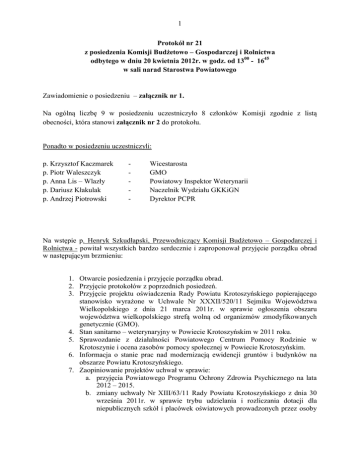 1 Protokół nr 21 z posiedzenia Komisji Budżetowo – Gospodarczej i
