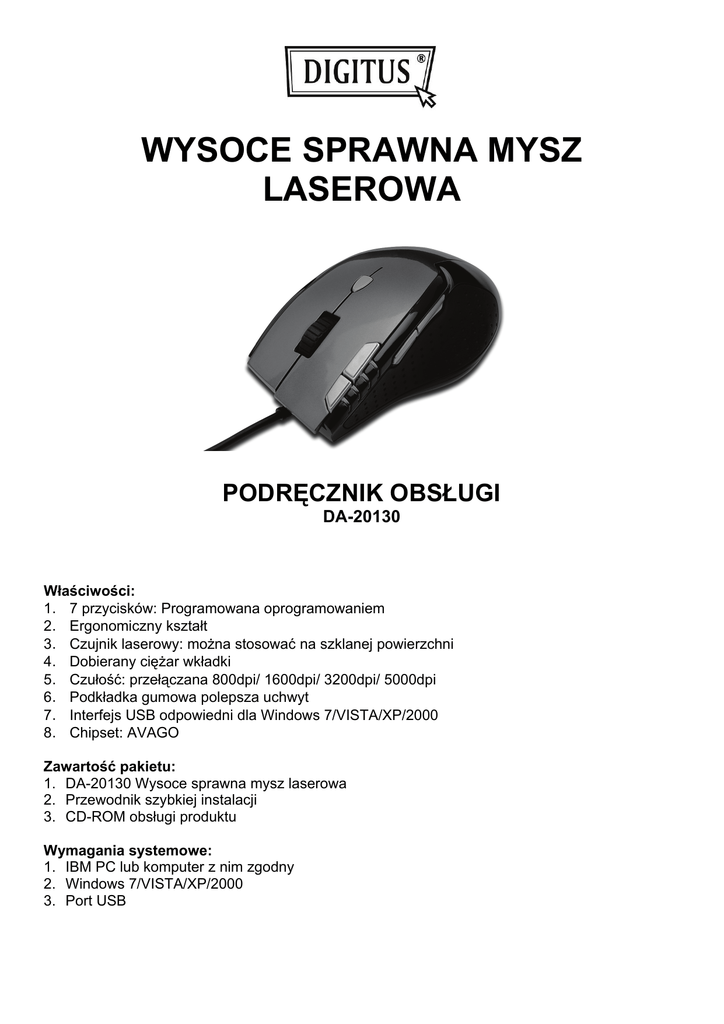 wysoce sprawna mysz laserowa podręcznik obsługi