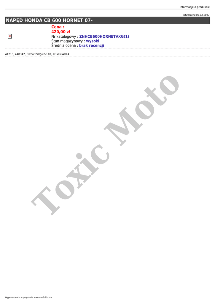 napęd honda cb 600 hornet 07 - Toxicmoto