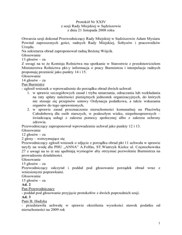Protokół Nr XXIV z sesji Rady Miejskiej w Sędziszowie