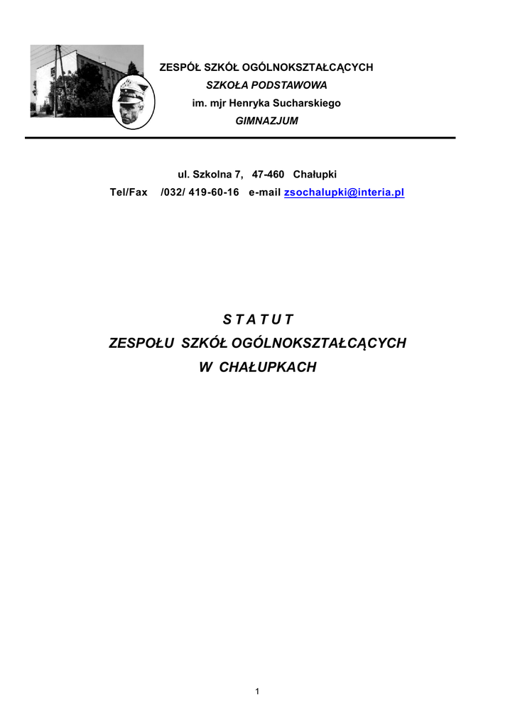 Statut ZSO w Chałupkach - Zespół Szkół Ogólnokształcących w