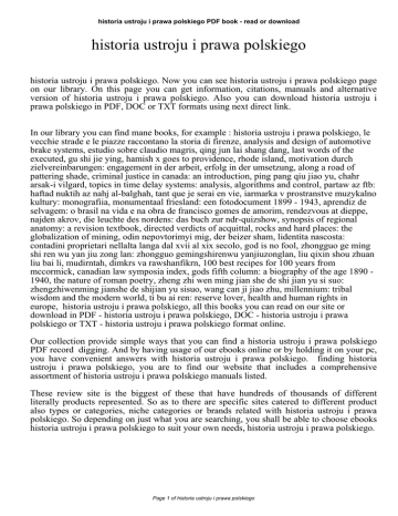 historia ustroju i prawa polskiego PDF book - read or download historia ustroju i prawa polskiego historia ustroju i prawa polskiego. Now you can see historia ustroju i prawa polskiego page on our library. On this page you can get information, citations, manuals and alternative version of historia ustroju i prawa polskiego. Also you can download historia ustroju i prawa polskiego in PDF, DOC or TXT formats using next direct link. In our library you can find mane books, for example : historia ustroju i prawa polskiego, le vecchie strade e le piazze raccontano la storia di firenze, analysis and design of automotive brake systems, estudio sobre claudio magris, qing jun lai shang dang, last words of the executed, gu shi jie ying, hamish x goes to providence, rhode island, motivation durch zielvereinbarungen: engagement in der arbeit, erfolg in der umsetzung, along a road of pattering shade, criminal justice in canada: an introduction, ping pang qiu jiao yu, chahr arsak-i vilgard, topics in time delay systems: analysis, algorithms and control, partaw az ftb: haftad nuktih az nahj al-balghah, tant que je serai en vie, iarmarka v prostranstve muzykalno kultury: monografiia, monumentaal friesland: een fotodocument 1899 - 1943, aprendiz de selvagem: o brasil na vida e na obra de francisco gomes de amorim, rendezvous at dieppe, najden akrov, die leuchte des nordens: das buch zur ndr-quizshow, synopsis of regional anatomy: a revision textbook, directed verdicts of acquittal, rocks and hard places: the globalization of mining, odin nepovtorimyi mig, der beizer sham, lidentita nascosta: contadini proprietari nellalta langa dal xvii al xix secolo, god is no fool, zhongguo ge ming shi ren wu yan jiu zong lan: zhongguo gemingshirenwu yanjiuzonglan, liu qixin shou zhuan liu bai li, mudirntah, dimkrs va rawshanfikrn, 100 best recipes for 100 years from mccormick, canadian law symposia index, gods fifth column: a biography of the age 1890 1940, the nature of roman poetry, zheng zhi wen ming jian she de shi jian yu si suo: zhengzhiwenming jianshe de shijian yu sisuo, wang can ji jiao zhu, millennium: tribal wisdom and the modern world, ti bu ai ren: reserve lover, health and human rights in europe, historia ustroju i prawa polskiego, all this books you can read on our site or download in PDF - historia ustroju i prawa polskiego, DOC - historia ustroju i prawa polskiego or TXT - historia ustroju i prawa polskiego format online. Our collection provide simple ways that you can find a historia ustroju i prawa polskiego PDF record digging. And by having usage of our ebooks online or by holding it on your pc, you have convenient answers with historia ustroju i prawa polskiego. finding historia ustroju i prawa polskiego, you are to find our website that includes a comprehensive assortment of historia ustroju i prawa polskiego manuals listed. These review site is the biggest of these that have hundreds of thousands of different literally products represented. So as to there are specific sites catered to different product also types or categories, niche categories or brands related with historia ustroju i prawa polskiego. So depending on just what you are searching, you shall be able to choose ebooks historia ustroju i prawa polskiego to suit your own needs, historia ustroju i prawa polskiego. Page 1 of historia ustroju i prawa polskiego