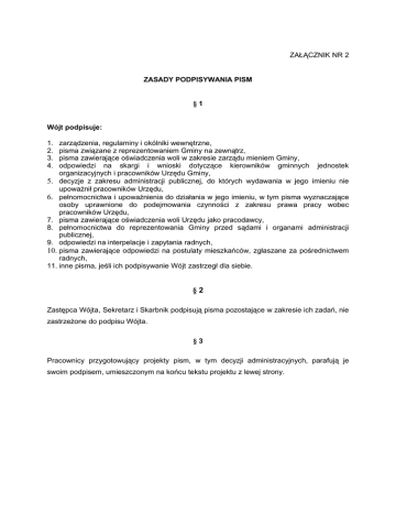 ZAŁĄCZNIK NR 2 ZASADY PODPISYWANIA PISM § 1 Wójt