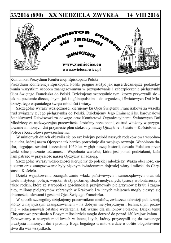 33/2016 (890) XX NIEDZIELA ZWYKŁA 14 VIII 2016