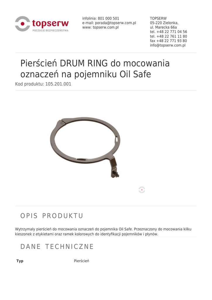 Pierścień DRUM RING do mocowania oznaczeń na pojemniku Oil