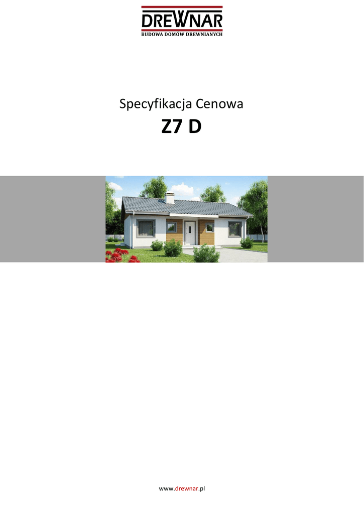 Specyfikacja Cenowa Z7 D www.drewnar.pl STAN DEWELOPERSKI DEWELOPERSKI ROZSZERZONY ROZSZERZONY STAN Poniższe prace prace ii rozwiązania rozwiązania opisują opisują strukturę strukturę budowy budowy domu domu całorocznego całorocznego w w zakresie zakresie standardu standardu Poniższe wykończenia: „STAN „STAN DEWELOPERSKI DEWELOPERSKI ROZSZERZONY“. ROZSZERZONY“. Niniejsze Niniejsze rozwiązania rozwiązania należy należy traktować, traktować, jako jako wykończenia: przykładowe, które które po po dostarczeniu dostarczeniu projektu projektu architektoniczno-konstrukcyjnego architektoniczno-konstrukcyjnego zostaną zostaną zaktualizowane. zaktualizowane. przykładowe, 1. Ściany zewnętrzne Budowa ścian z izolacją zewnętrzną w przekroju od środka na zewnątrz: 12,5 mm 140,0x40,0 mm w rozstawie 625mm 150,0 mm 12,0 mm 60,0 mm - płyta gipsowo-kartonowa ogniochronna na stelażu + szpachlowanie połączeń folia polietylenowa masywna, nośna konstrukcja drewniana pianka poliuretanowa tworząca rdzeń izolacji cieplnej i akustycznej płyta wiórowa OSB/MFP membrana wysokoparoprzepuszczalna styropian fasadowy podkład pod tynk zbrojony siatką tynk sylikatowy/sylikonowy cienkowarstwowy barwiony w masie w kolorze wg. wzornika. 5. Konstrukcja stropowa Budowa konstrukcji stropowej nad parterem w przekroju od góry w dół (wykończenie płyta GK), budynek bez poddasza użytkowego: 12,5 mm 140,0x40,0 mm w rozstawie 625mm 150,0 mm 10,0 mm 50,0 mm 20,0 mm 20,0 mm 2. płyta gipsowo-kartonowa ogniochronna na stelażu + szpachlowanie połączeń folia polietylenowa masywna, nośna konstrukcja drewniana pianka poliuretanowa tworząca rdzeń izolacji cieplnej i akustycznej płyta wiórowa OSB/MFP membrana wysokoparoprzepuszczalna pianka poliuretanowa tworząca rdzeń izolacji termicznej oraz wodnej pustka powietrzna/wentylacyjna deska elewacyjna w kolorze wg. wzornika Ściany wewnętrzne Budowa ścian: 12,5 mm 120,0 mm 100,0 mm 12,5 mm 3. płyta gipsowo-kartonowa ogniochronna + szpachlowanie połączeń folia polietylenowa masywna, nośna konstrukcja drewniana (w przypadku ścian zawierających instalacje grubość może wynosić 140 mm) wełna mineralna tworząca rdzeń izolacji cieplnej i akustycznej folia polietylenowa płyta gipsowo-kartonowa ogniochronna + szpachlowanie połączeń Połączenie paneli ściennych Wszystkie ściany zakotwione są do dolnej części budynku (konstrukcji fundamentowej lub konstrukcji stropowej piwnicy) w mocny i trwały sposób za pomocą odpowiednich elementów kotwiących (kotew). Elementy kotwiące wykonuje na swój koszt zamawiający. 4. Izolacja przeciwwilgociowa Ściany zewnętrzne oraz wewnętrzne na parterze w miejscu styku z dolną częścią budynku (konstrukcją fundamentową lub konstrukcją stropową piwnicy) są starannie zabezpieczone przed wilgocią za pomocą warstwy papy bitumicznej. DREWNAR - Właściciel Zbigniew Majchrzak tel: 512-437-800 @: [email protected] Drzwi wewnętrzne pełne bądź z przeszkleniem, w kolorze według wzornika. Zakup szyldu i klamki leży po stronie inwestora. 180,0 mm w rozstawie 625mm 200,0 mm 12,5 mm masywna, nośna konstrukcja drewniana 12. Prace malarskie pianka poliuretanowa tworząca rdzeń izolacji cieplnej i akustycznej folia polietylenowa płyta gipsowo-kartonowa ogniochronna na stelażu + szpachlowanie połączeń Zewnętrzne części drewniane pokryte są dwiema warstwami odpornej powłoki zewnętrznej w kolorze wg wzornika. 13. Drewno konstrukcyjne 6. Konstrukcja dachu Budowa płaszczyzny dachu budynku z wykończonym poddaszem, w przekroju z góry na dół: Rozwiązanie z blachodachówką: Budowa ścian z deską elewacyjną w przekroju od środka na zewnątrz: 11. Drzwi wewnętrzne blachodachówka/płyta falista 40,0 mm łaty drewniane 20,0 mm kontrłaty drewniane membrana wysokoparoprzepuszczalna 10,0 mm płyta wiórowa OSB/MFP 150,0 mm masywna, nośna konstrukcja drewniana Wysunięcia dachu (okapy) obłożone są deskami świerkowymi/sosnowymi. Zewnętrzne widoczne krokwie posiadają wykończoną powierzchnię. Na życzenie zamawiającego i za dodatkową opłatą poszycie dachu może zostać wykonane z dachówki ceramicznej/betonowej lub gontu drewnianego. 7. Okna i drzwi balkonowe Wszystkie okna i drzwi balkonowe (tarasowe) z profilami z PVC (profil pięciokomorowy) z okleiną zewnętrzną oraz wewnętrzną w kolorze według wzornika, przystosowanym dla rozwieranego i uchylnego sposobu otwierania. Parapety zewnętrzne – wykonane z blachy/drewna obrobionego powierzchniowo. Parapety wewnętrzne – wykonane z drewna w kolorze według wzornika. 9. 14. Instalacja CO Instalacja systemu centralnego ogrzewania wykonana jest z tworzywa sztucznego (wyposażonego w odpowiednią termoizolację) w oparciu o dostarczony projekt instalacyjny. Instalacja nie zawiera rozdzielaczy oraz oprzyrządowania. Na życzenie zamawiającego i za dodatkową opłatą rodzaj, zakres i wykonanie systemu centralnego ogrzewania mogą być zmodyfikowane (np. przez dostarczenie kotła elektrycznego/gazowego, zbiornika na ciepłą wodę c.w.u., systemu ogrzewania ściennego, systemu ogrzewania podłogowego, systemu pompy cieplnej, systemu kolektorów słonecznych, systemu rekuperacji powietrza, itp.). Odwodnienie dachu Rynny okapowe i rury spustowe wykonane są z wysokiej jakości tworzywa PVC z barwną powłoką ochronną. Pionowe rury prowadzone są do wierzchu dolnej części budynku (konstrukcji fundamentowej lub konstrukcji stropu piwnicy). 8. Drewno konstrukcyjne suszone komorowo, czterostronnie strugane, impregnowane środkami przeciwgrzybicznymi. Przeszklenia okien i drzwi balkonowych Wszystkie okna i drzwi balkonowe (tarasowe) przeszklone są markowymi, cieplnie izolacyjnymi, potrójnymi szybami z izolacyjną ramką dystansową. Współczynnik Uw dla okien ≤1,0. 10. Główne drzwi wejściowe Drzwi wejściowe stalowe. Pełne wypełnienie bądź częściowe przeszklenie, w kolorze według wzornika, z bezpi