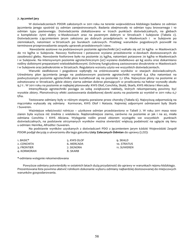 7. Jęczmień jary W doświadczeniach PDOiR założonych w