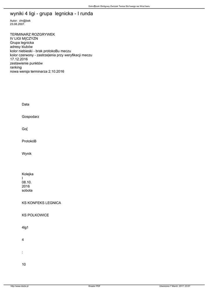 modyfikacja terminarza IV ligi legnickiej.