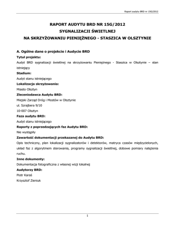 RAPORT AUDYTU BRD NR 15G/2012 SYGNALIZACJI ŚWIETLNEJ