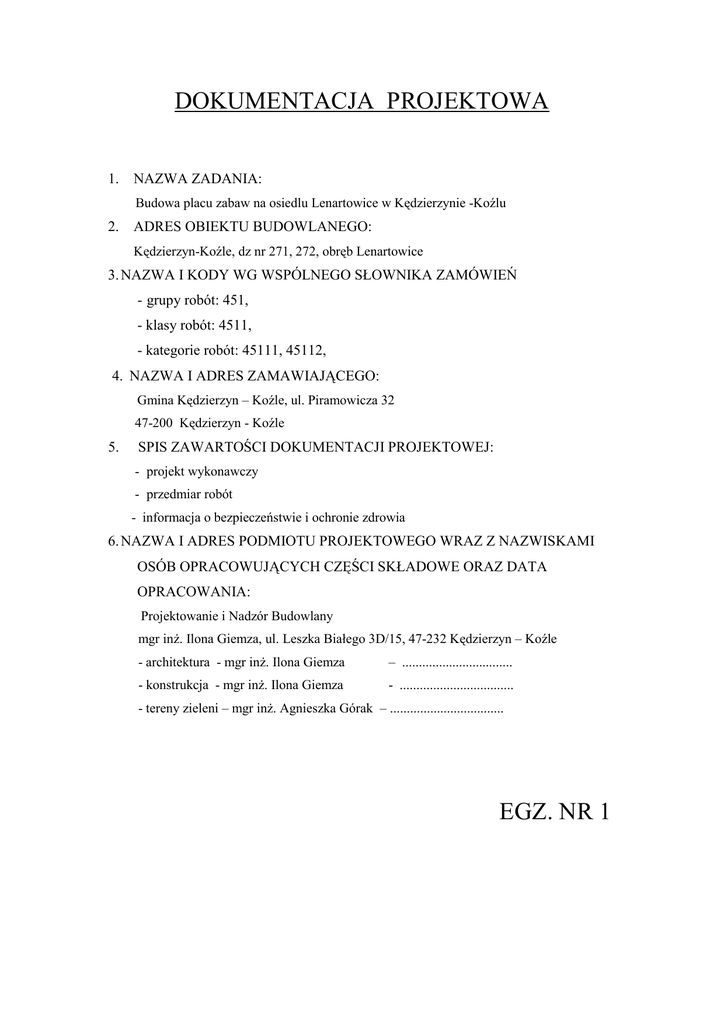 dokumentacja projektowa egz. nr 1 - Urząd Miasta Kędzierzyn