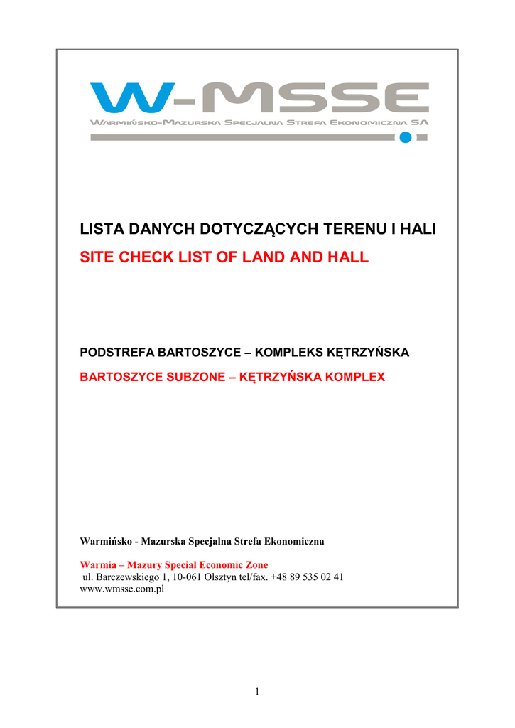 lista danych dotyczących terenu i hali site check list of land and hall