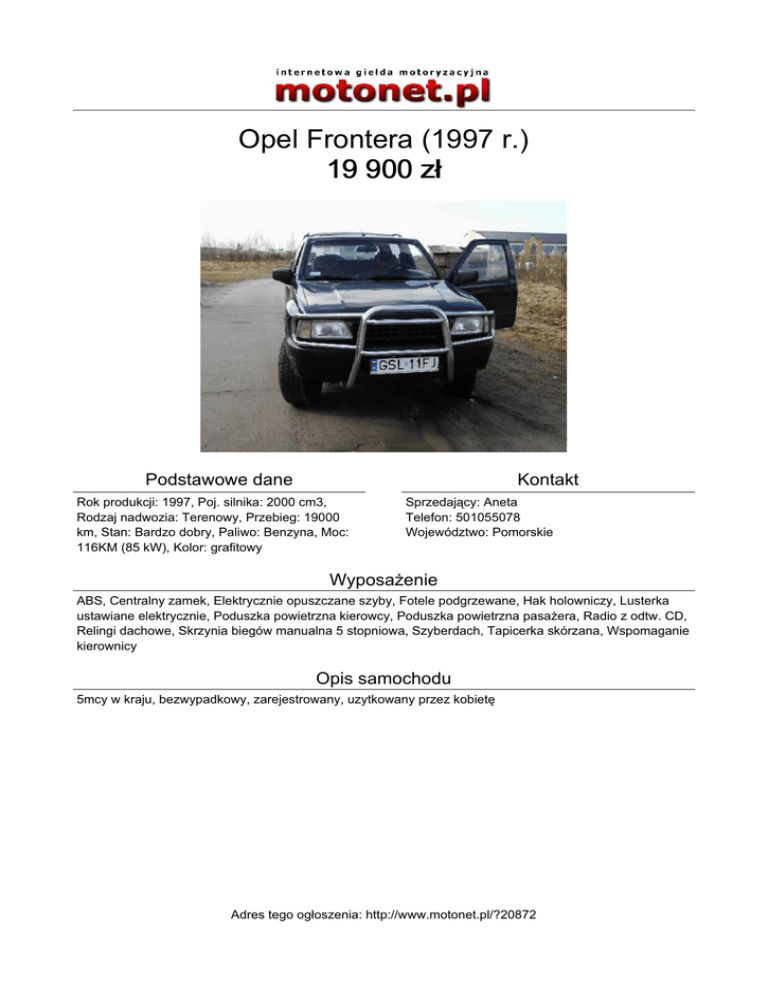 Opel Frontera (1997 r.) 19 900 zł