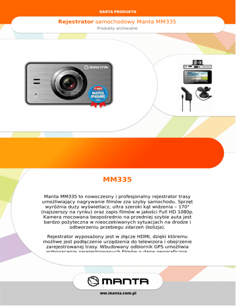 Rejestrator samochodowy Manta MM335