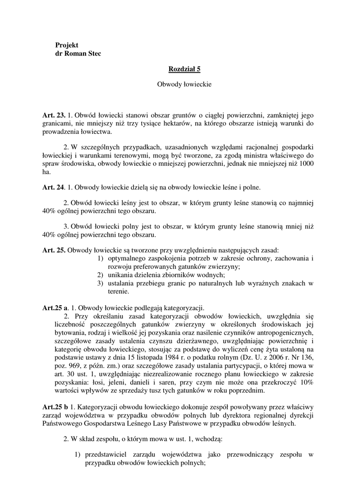 Projekt dr Roman Stec Rozdział 5 Obwody łowieckie Art. 23. 1