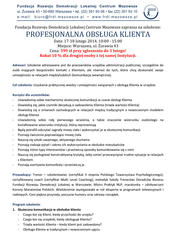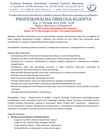 profesjonalna obsługa klienta - Fundacja Rozwoju Demokracji