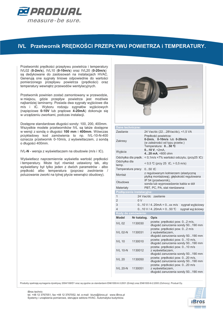 IVL Przetwornik PRĘDKOŚCI PRZEPŁYWU