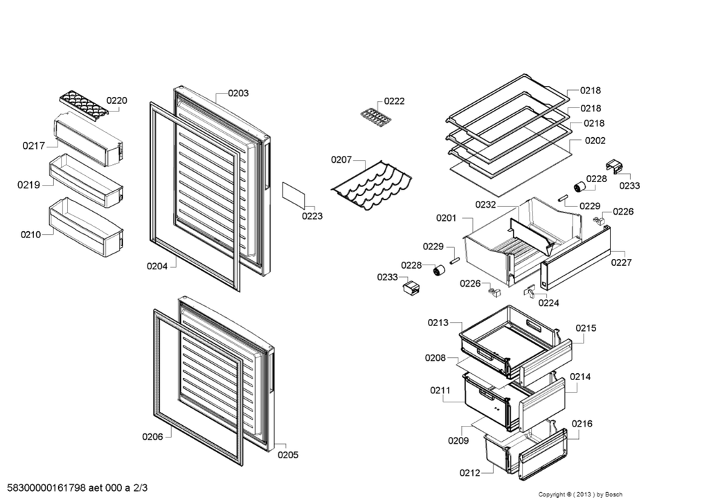 ID pozycji Nr części zamiennej Zamiennik Opis 0217 00704420 0201 00705913 0202 00704421 Płyta szklana 0203 00710500 Drzwi 0204 00686639 Uszczelka drzwi 0205 00686649 Drzwi zamrażalnika 0206 00710489 Uszczelka drzwi 0207 00704339 Półka na butelki 0208 00704340 Płyta szklana 0209 00704341 Płyta szklana 0210 00704406 Taca 0211 00704409 Pojemnik na mrożonki 0212 00704410 Pojemnik na mrożonki 0213 00704411 Pojemnik na mrożonki 0214 00704747 Blenda 0215 00704748 Blenda 0216 00704749 Blenda 0218 00704423 Płyta szklana 0219 00704425 Taca 0220 00654282 Wkładka na jajka 0222 00654244 Foremka do lodu 0223 00614976 Logo firmowe 8450 00721532 Instrukcja montażu 0227 00706684 Blenda 0225 00706683 Ściana działowa 0226 00705015 Klawisz 0224 00705014 Pokrywa Taca 00790343 Pojemnik na warzywa 0228 00623851 Rolka 0229 00623852 Oś 8501 00466148 Ściereczka