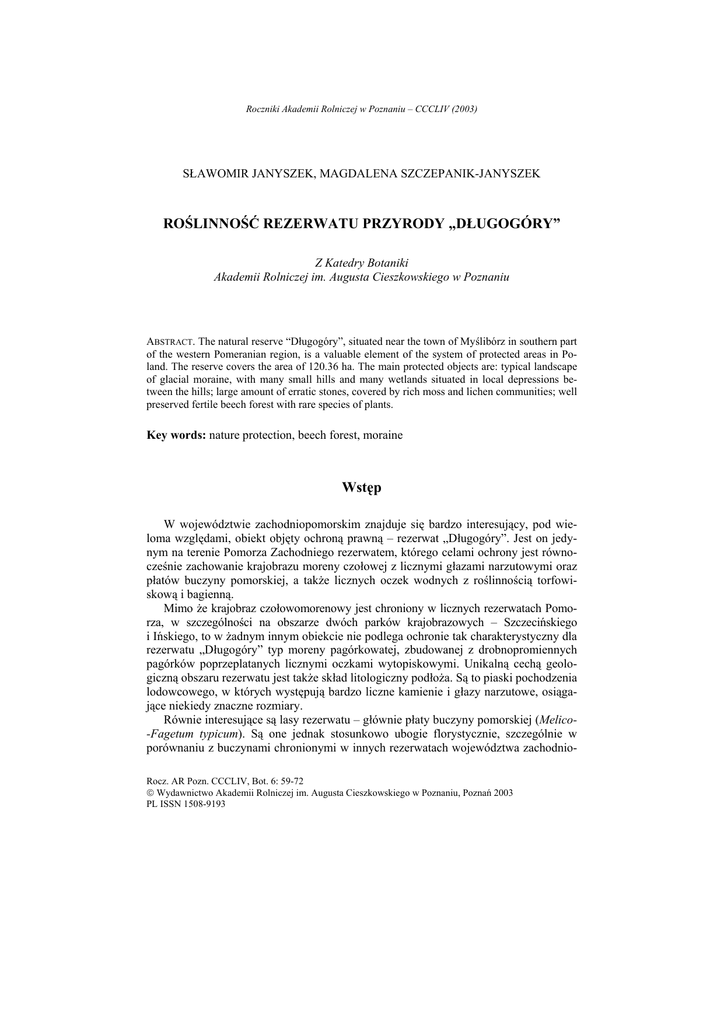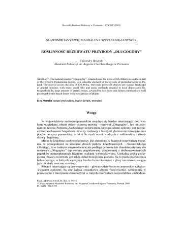 ROŚLINNOŚĆ REZERWATU PRZYRODY „DŁUGOGÓRY” Wstęp