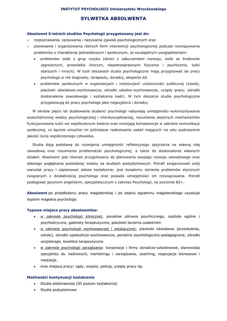 sylwetka absolwenta - Instytut Psychologii UWr
