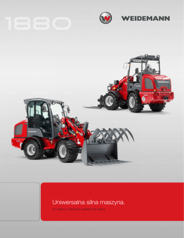 1880 Uniwersalna silna maszyna. Do wyboru z daszkiem operatora lub kabiną. Nasz najsilniejszy Hoftrac . ® Nowy model 1880 stanowi połączenie pomiędzy mniejszymi maszynami z serii Hoftrac® i mocnymi ładowarkami kołowymi. Łączy zwrotność, niezawodność i uniwersalność z dużą siłą skrawania i podnoszenia. Wraz z najnowszą technologią silnika, która spełnia wymagania normy dotyczącej emisji spalin na poziomie IIIB (poziom IV interim), ta maszyna jest w najlepszy sposób przygotowana na przyszłość. Klimatyzacja: teraz praca jest przyjemniejsza nawet latem. Dzięki opcjonalnej klimatyzacji operator ma zapewniony najwyższy komfort pracy nawet w wysokich temperaturach. Wymiana narzędzi roboczych bez konieczności wysiadania. Opcjonalna blokada hydrauliczna ułatwia pracę i sprawia, że maszyny Weidemann są wyjątkowo uniwersalne i elastyczne. W kilka sekund można je wyposażyć do wykonania nowego zadania. Przestronna kabina. Przestronna kabina zapewnia dużo miejsca na głowę oraz swobodę ruchu. Operator może więc całkowicie skupić się na tym, co najważniejsze, pracować bezpiecznie i wygodnie także przy trudnych zadaniach. Standardowa szyba tylna. Dzięki szybie tylnej ze szkła operator chroniony jest przed deszczem, wiatrem i spalinami. Opcjonalna szyba przednia. Dodatkowa ochrona przed czynnikami atmosferycznymi i kurzem z przodu. Odchylane na bok stanowisko operatora lub kabina. Nieskomplikowany dostęp do silnika, systemu hydraulicznego i układu elektrycznego ułatwia kontrolę i konserwację. Nowa technologia silników. Od 1990 r. istnieją w Europie konkretne przepisy dotyczące emisji spalin maszyn i pojazdów z silnikiem wysokoprężnym. Plan przepisów przewiduje stopniowe ograniczanie emisji spalin silników dla różnych klas wydajności. Stopnie ograniczenia emisji spalin określane są w Europie jako etapy lub poziomy (I, II, III A, III B, IV) a w USA jako „Tier" (1, 2, 3, 4 interim i 4 final). Każdy poziom zaleca maksymalną dopuszczalną wartość graniczną substancji szkodliwych. Standardowy silnik w modelu 1880 spełnia wymagania poziomu IIIA. Opcjonalnie dostępny silnik poziomu IIIB ma następujące właściwości: - oczyszczanie spalin w postaci filra cząsteczek stałych, - dodatkowa optymalizacja wydajności chłodzenia, - obniżenie zużycia paliwa o ok. 5 %. Wszystko pod ręką. Joystick staje się uniwersalnym narzędziem, a obsługa maszyny jest jeszcze prostsza. Poza funkcją 3 obwodu sterowniczego, który można włączyć na dźwigni wielofunkcyjnej, dołączono kolejne nowe funkcje. Po pierwsze teraz trzeci obwód sterowniczy można obsługiwać także proporcjonalnie. Funkcję czwartego obwodu sterowniczego można także obsługiwać na joysticku. Na tropie błędów z systemem wedias. W nowym modelu 1880 za pomocą systemu diagnostyki i analizy wedias marki Weidemann można szybko i jednoznacznie ocenić wiele funkcji, m.in. trzeci i czwarty obwód sterowniczy, parametry silnika oraz funkcje elektroniczne. System diagnostyki i analizy marki Weidemann Podstawa konstrukcji Weidemann: legendarny układ przegubowo-wachadłowy. Ładowarki kołowe Weidemann zawsze stoją czterema kołami na ziemi – w każdej sytuacji, na każdym terenie. Ponieważ półwozie przednie i tylne mogą poruszać się niezależnie od siebie, zawsze szybko reagują na każdą nierówność terenu. Korzyść: operator zawsze porusza się z maksymalną trakcją, nie marnowana jest żadna moc. 1880 Bezpieczny dach operatora 1880 Kabina DANE TECHNICZNE PARAMETRY SILNIKA Standard Typ silnika 404D-22 404D-22 Moc silnika maks. kW / KM 36,3 / 50 36,3 / 50 Opcjonalnie Typ silnika 404F-22T 404F-22T Moc silnika maks. kW / KM 44,7 / 60 44,7 / 60 CIĘŻAR Ciężar roboczy (standard) kg 3 400 3 400 Ciężar wywracający z łyżką – maszyna prosta (wg ISO 14397) kg 2 086 2 289 Ciężar wywracający z widłami do palet – maszyna prosta (wg ISO 14397) kg 1 731 1 907 PARAMETRY POJAZDU Zbiornik paliwa l 65 65 Pojemność zbiornika oleju hydraulicznego l 35 35 UKŁAD HYDRAULICZNY Hydraulika jazdy – ciśnienie robocze bar 450 450 Hydraulika robocza – wydajność pompy (opcjonalnie) l/min 56 (63-100) 56 (63-100) Hydraulika robocza – ciśnienie robocze bar 210 210 Wysokość mm 2 336 2 346 Szerokość całkowita mm 1 214 1 214 Długość całkowita mm 4 715 4 715 Maks. wysokość sworznia obrotu łyżki mm 3 203 3 203 Promień wewnętrzny mm 1 831 1 831 Kąt zgięcia ° 45 45 Ogumienie standardowe 10.0/75-15AS ET- 5 10.0/75-15AS ET- 5 WYMIARY Więcej informacji na: www.weidemann.de Weidemann GmbH Mühlhäuser Weg 45–49 34519 Diemelsee-Flechtdorf Niemcy Tel. +49(0)5633 609-0 Fax +49(0)5633 609-666 [email protected] www.weidemann.de WM.16.28.1/01/2015 Weidemann jest spółką zależną Wacker Neuson SE, Monachium.