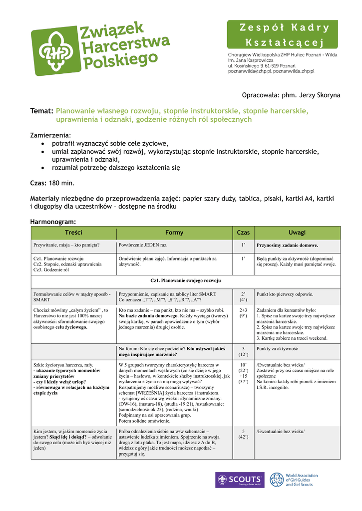 umiał zaplanować swój rozwój, wykorzystując stopnie instruktorskie, stopnie harcerskie,