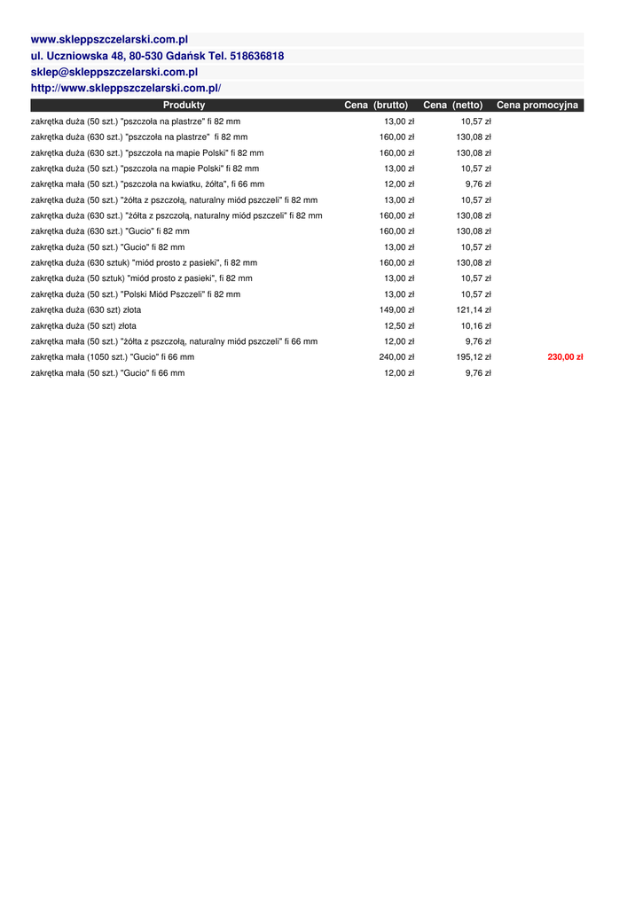 www.skleppszczelarski.com.pl ul. Uczniowska 48-50, 80