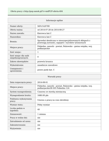 Oferta pracy z http://pup.sanok.pl/?c=mdPUP-oferta